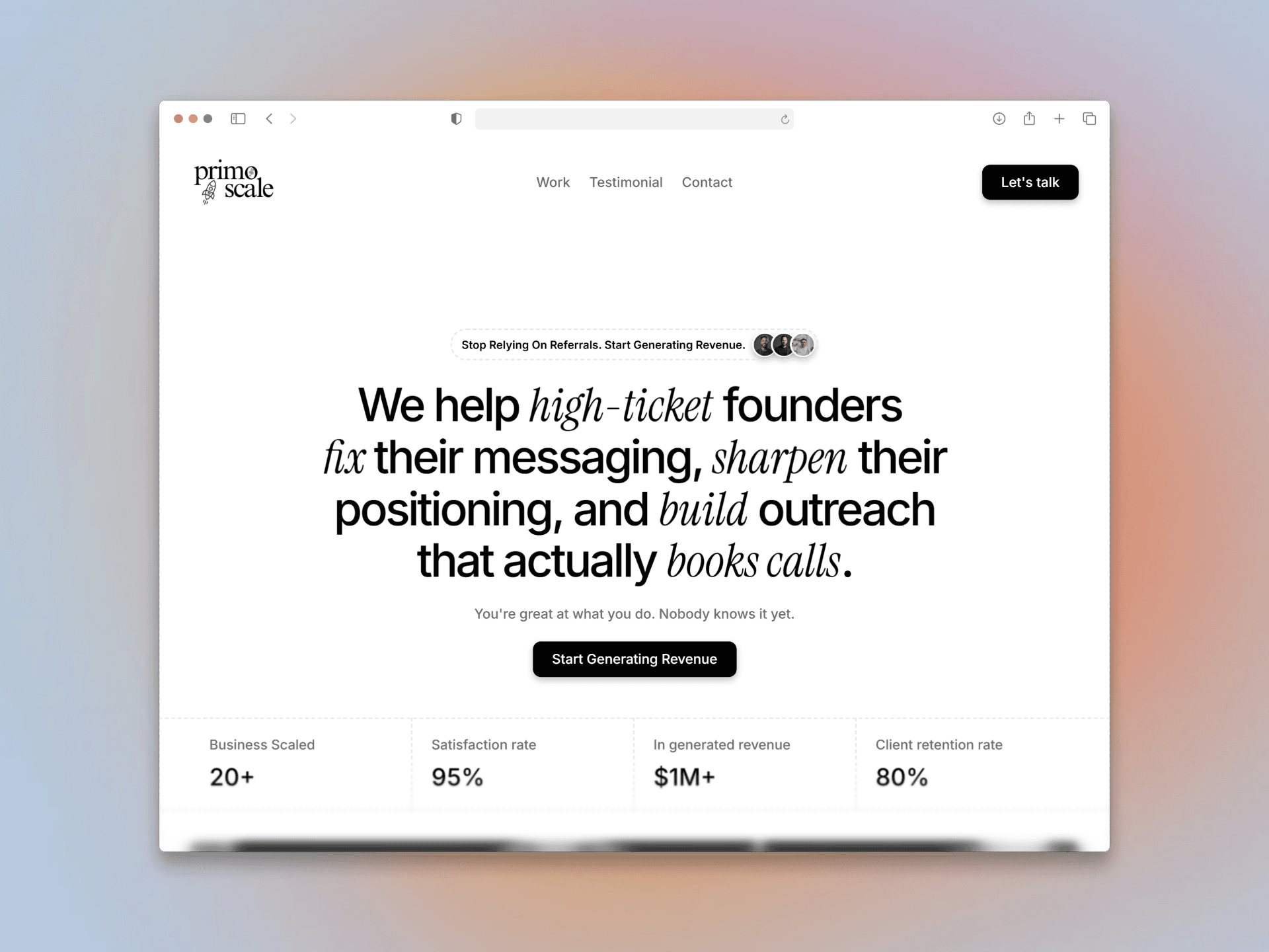 Most founders piece it together - someone for copy, another for design, a third for SEO. But it slows them down. We combine all three into one monthly service, built around one goal: turning visitors into clients.